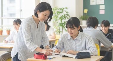 定期的な個別面談を通して、生徒の目標設定や進路希望を一緒に整理します。