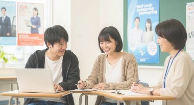 ・キャリア支援スタッフが面接練習や履歴書作成など、就職準備に向けた基礎サポートを実施