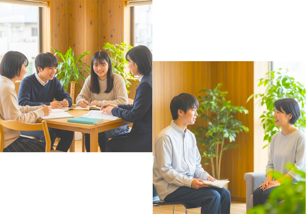 心の専門家が定期的に面談を行い、生徒様の感情面を丁寧にサポート。